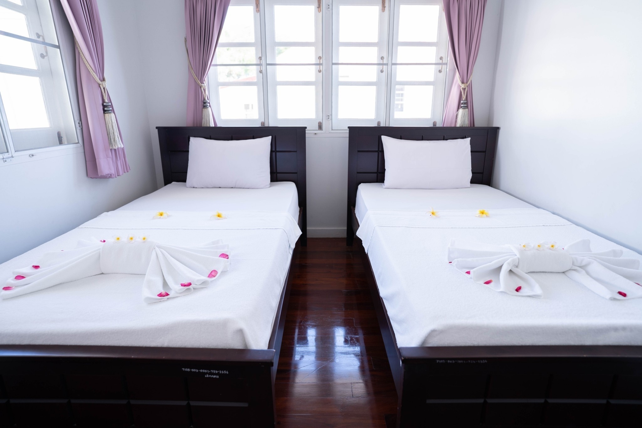 เจ้าหน้าที่สภากาชาดไทยลด 30% ราคา 2,450 บาท - มี 2 ห้องนอน , 2 ห้องน้ำ , 1 ห้องโถง , 1 ห้องครัว - ห้องนอน 1 มี 2 เตียงเดี่ยว ขนาด 3.5 ฟุต (ห้องแอร์) - ห้องนอน 2 มี 2 เตียงเดี่ยว ขนาด 3.5 ฟุต (ห้องแอร์) - ห้องน้ำ 2 ห้อง ภายในเรือน 1 ห้อง (เครื่องทำน้ำอุ่น) และภายนอกเรือน 1 ห้อง - ห้องโถง (แอร์) พร้อมเซ็ตโต๊ะทานอาหารพร้อมเก้าอี้ 6 ตัว - ตู้เย็น , โทรทัศน์ , WIFI - ห้องครัว พร้อมอุปกรณ์เครื่องครัว , กระติกน้ำร้อน , ไมโครเวฟ - (พักรวมกันได้ไม่เกิน 6 ท่าน) “มีบริการที่นอนเสริม 50 บาทต่อชุด ต่อ 1 ท่าน แต่ต้องไม่เกินจำนวนที่ได้กำหนดไว้”